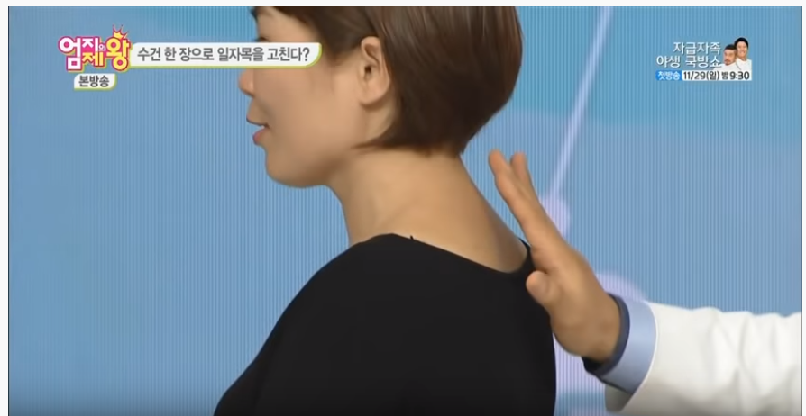 임시방편으로 수건으로 올바른 자세를 잡을 수 있는데
