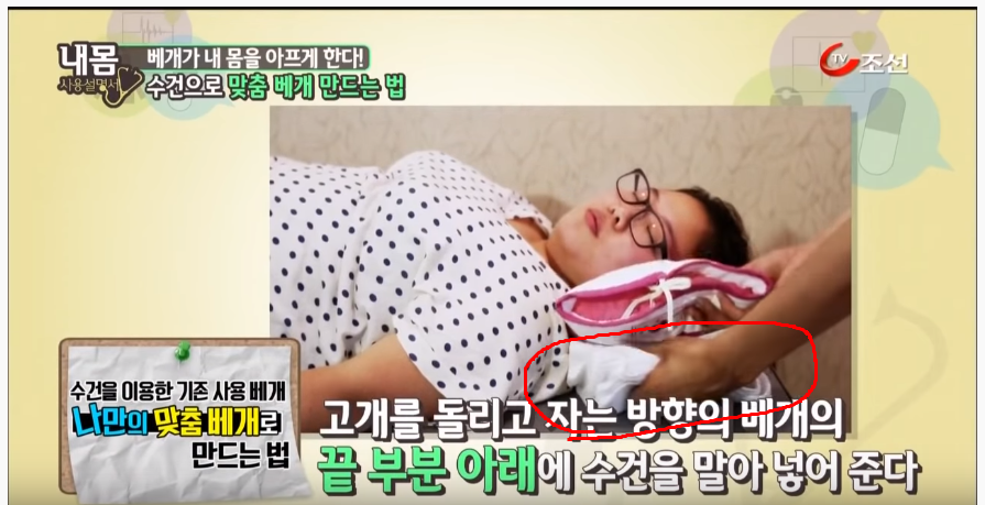 수건으로 맞춤 베개로 사용하는 건