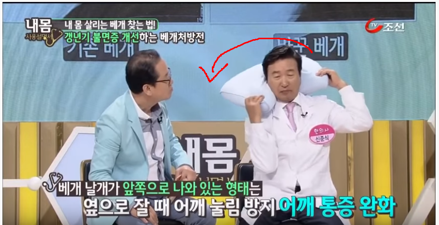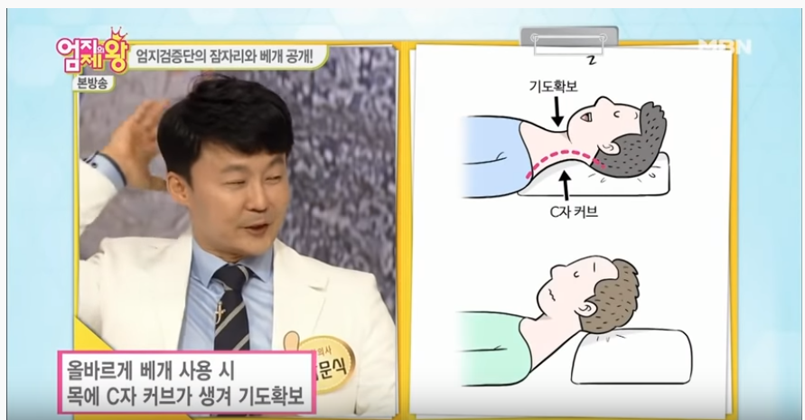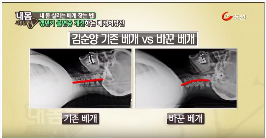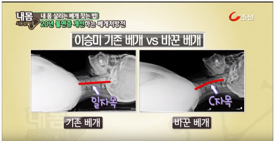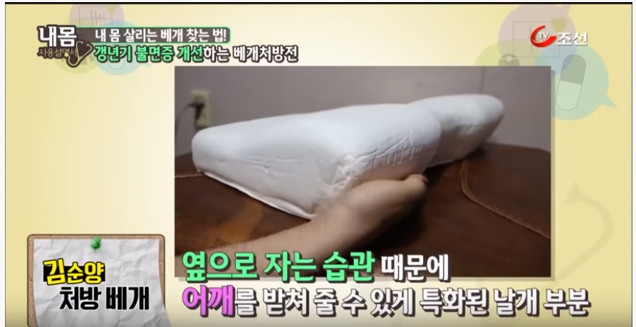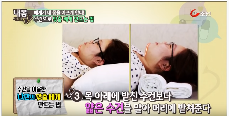 내몸 사용설명서에서 일자목 옆으로 잘 때 추천하는 베개는
