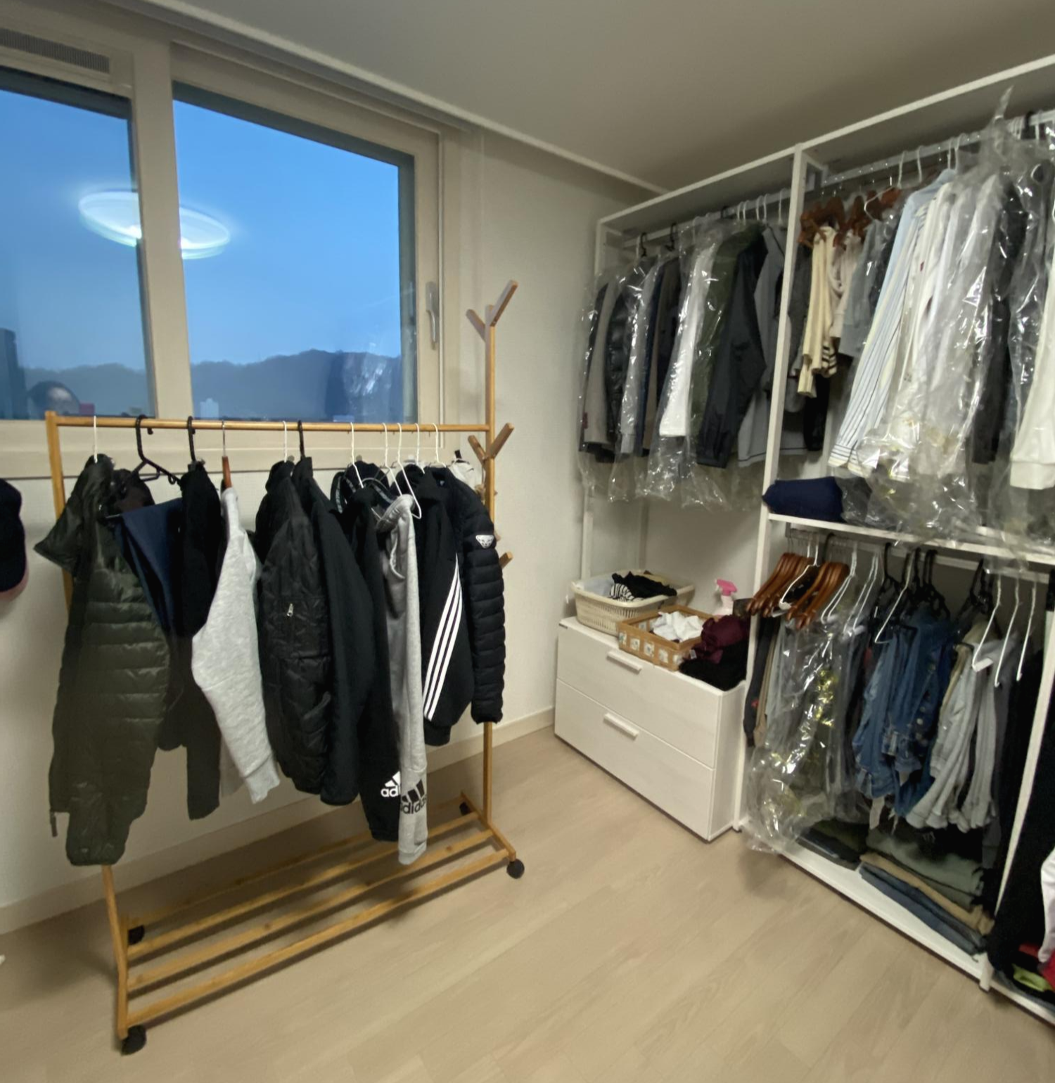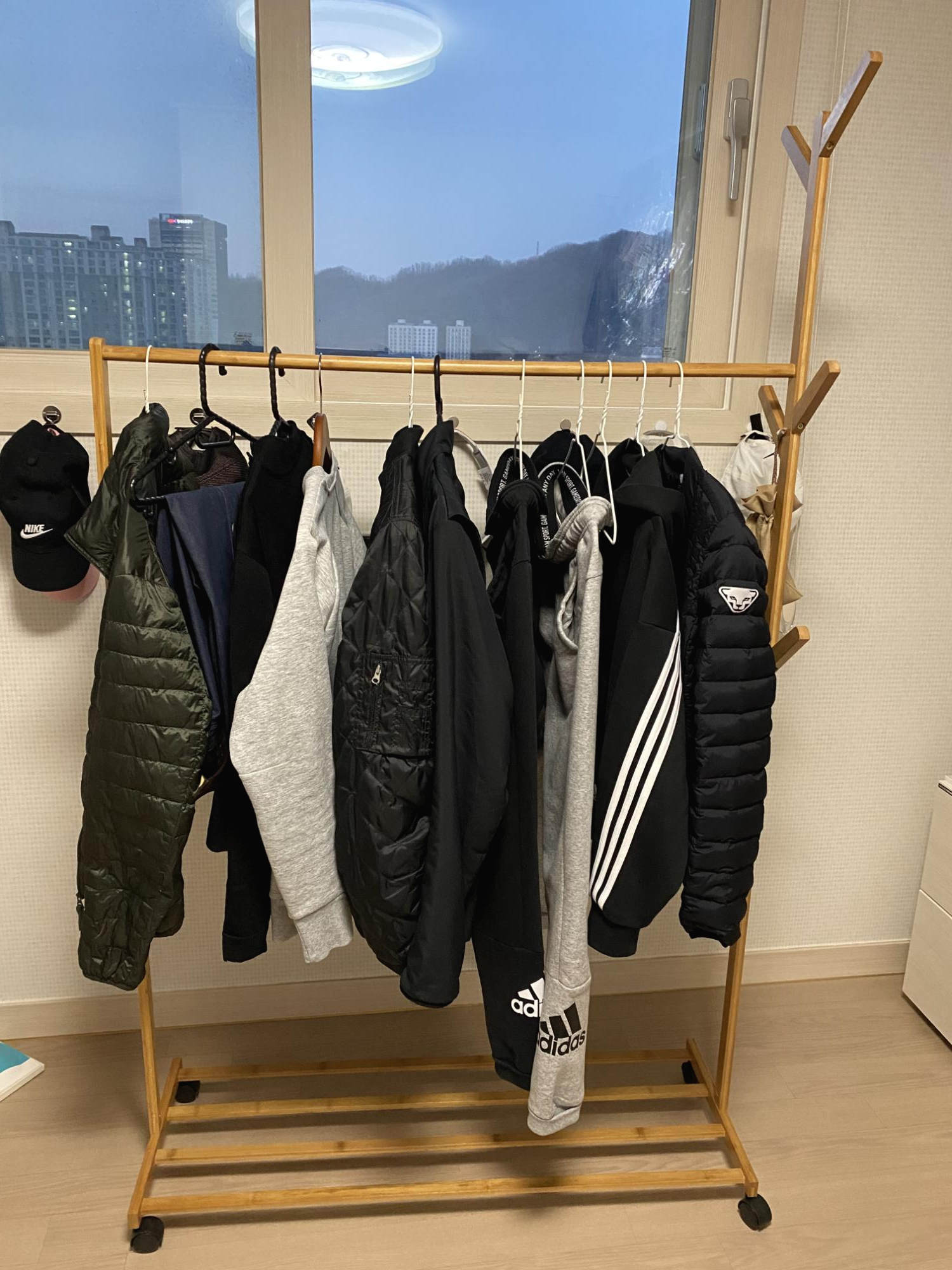 조립한 옷걸이 방에 놓으면서